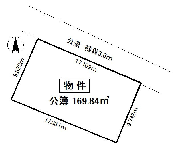 | 接道状況 | 一方 (北側 公道3.6m 間口17.0m) | ||