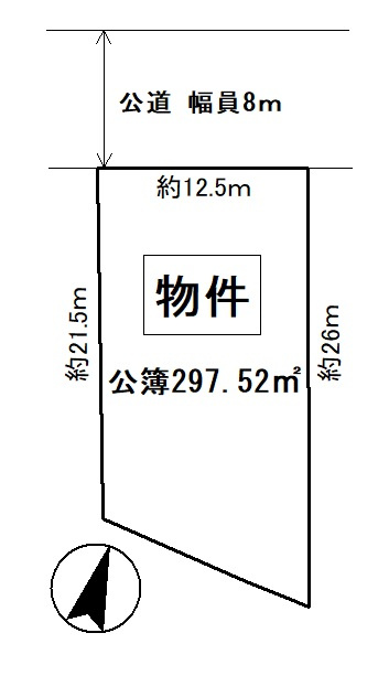 | 接道状況 | 一方 (北側 公道8.0m 間口12.0m) | ||