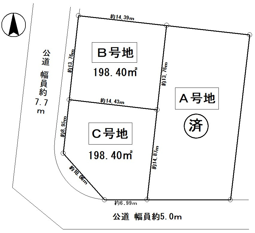 | 接道状況 | 角地 (西側 公道7.7m 間口8.9m) (南側 公道5.0m 間口6.9m) | ||