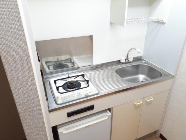 エアコン、照明、ミニ冷蔵庫、1口ガスコンロあり