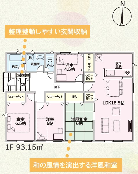 LDK 18.5帖 1室 和室 6.0帖 1室 洋室 6.5帖 1室 洋室 6.0帖 1室 洋室 4.5帖 1室 |