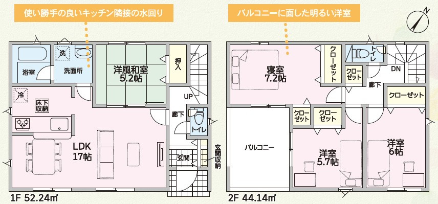 LDK 17.0帖 1室 / 和室 5.2帖 1室 / 洋室 7.2帖 1室 / 洋室 6.0帖 1室 / 洋室 5.7帖 1室 / |